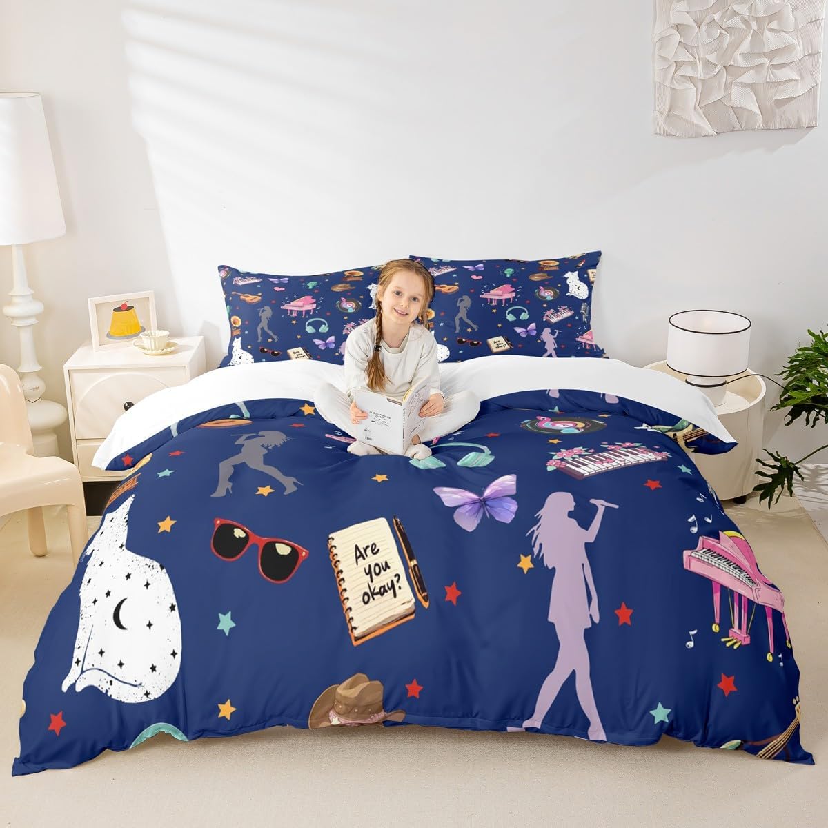 Package Include Duvet Cover and Pillowcases Duvet Cover Set Pattern Bedding Set,Simply Decorating Your Rooms Any Time You Want,Bringing You Fresh Feel for Year Round Use. Material Made From Polyester Microfiber,The Duvet Cover Offers a Noticeably Soft Hand Feel. Size Information Toddler Size 2Pcs Duvet Cover Set:1 Duvet Cover 42"x58", 1 Pillowcase 20"x30", without Comforter. Twin Size 2Pcs Duvet Cover Set:1 Duvet Cover 68"x90", 1 Pillowcase 20"x30", without Comforter. Full Size 3Pcs Duvet Cover Set: 1 Duvet Cover 79"x90", 2 Pillowcase 20"x30", without Comforter. Queen Size 3Pcs Duvet Cover Set:1 Duvet Cover 90"x90", 2 Pillowcase 20"x30", without Comforter. King Size 3Pcs Duvet Cover Set:1 Duvet Cover 104"x90", 2 Pillowcase 20"x36", without Comforter. Personalize Your Bedroom Beautiful Design and Colorful Print,Makes Your Bedroom Unique and Brings You a Wonderful Dream. Washing Instructions Machine Wash Separately In Cold Water,Hang Dry,Do Not Bleach. Occasion The Cute Soft Duvet Cover Bedding Sets Designed for Children,Adult,Men,Women,Teens. This Duvet Cover Set Is Also Suitable for Full Seasons,Spring,Summer,Autumn and Winter. For Your Family and Friends.